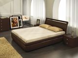 Кровать Тау, изготавливается из массива и имеет три типа покрытия: шпоном Бука, Дуба или шпоном Деко.