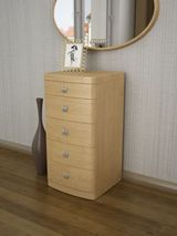Бремо 5 - стильный узкий и высокий комод на пять ящиков, из массива дерева. Габаритные размеры: 40 х 42,5 х 79 см. Четыре варианта отделки: шпон Бука, шпон Дуба, шпон Деко. Всего 40 вариантов цвета Большой выбор ручек. "Люкс" - система плавного закрывания ящиков, по умолчанию.